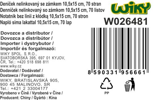 Deníček se zámkem o velikosti 10,5x15 cm Plyš.