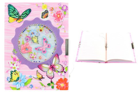 Krásný barevný deník pro holčičky s motivem motýlků. Deník je uzamykatelný a balení obsahuje 2 klíčky. Uvnitř deníku linkované listy. Baleno v sáčku. Rozměry deníku 13x18x1,5 cm. Věk 3+