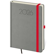Diář je vyroben ze zajímavé matné koženky s nepravidelnou strukturou, navíc je doplněn o gumičku pro uzavření v kontrastní barvě.