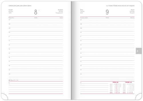 Denní diář Ajax 2026 v tmavě zelené barvě. Jemně strukturovaný povrch s atypickým reliéfem je vhodný pro všechny typy ražeb. Diář má zakulacené rohy, poutko na tužku a elastickou gumičku. Denní rozvrh s česko-slovenským kalendáriem a doplňkovou angličtinou, němčinou, maďarštinou a ruštinou.