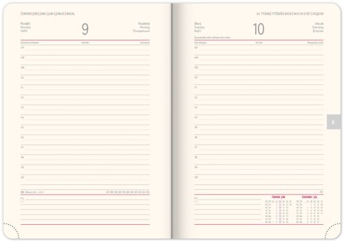 Denní diář Vivella Top 2025 v černé barvě. Nová kolekce vsadila na osvědčené barvy, které doplňuje nová ražba letopočtu. Denní rozvrh s česko-slovenským kalendáriem a doplňkovou angličtinou, němčinou, maďarštinou a ruštinou.