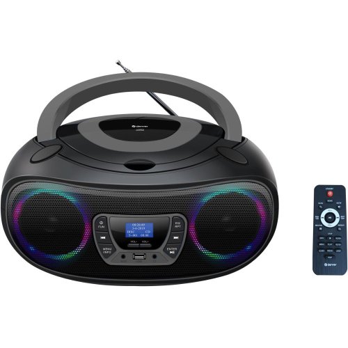 DAB+/FM tuner LCD displej LED osvětlení okolo reproduktorů Bluetooth 5.0 CD přehrávač USB vstup - podpora MP3 AUX vstup 3,5 mm