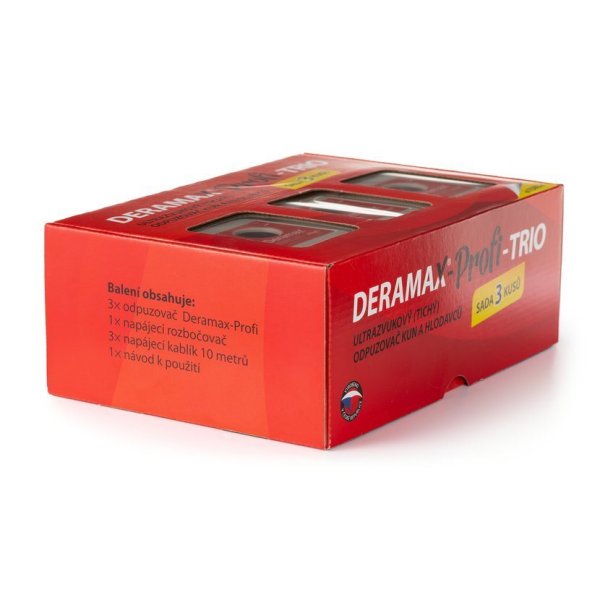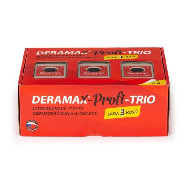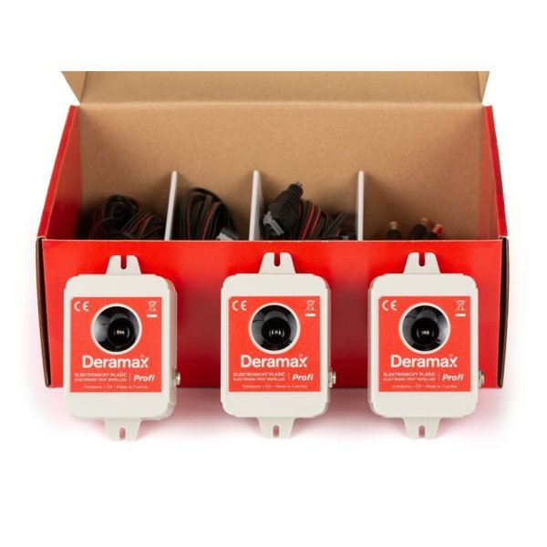 Sada plašičů Deramax-Profi-Trio je v současné době velmi žádaným produktem proti kunám a hlodavcům protože splňuje požadavek mnoha zákazníků na komplexní ochranu celého rodinného domu, tedy např. sklep + přízemí + podkroví. A jestliže je celá sada využitá jen pro jedno podlaží, dochází k významnému zvýšení efektu proti škůdcům oproti využití jednoho plašiče.