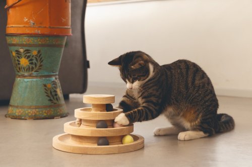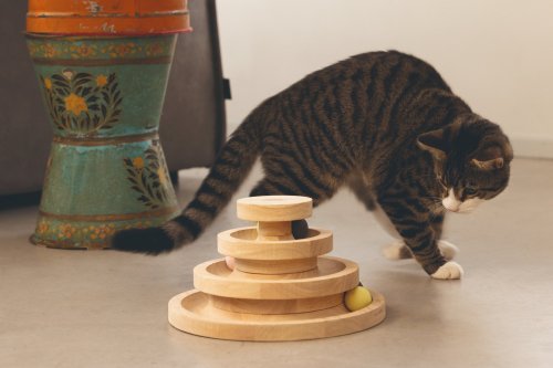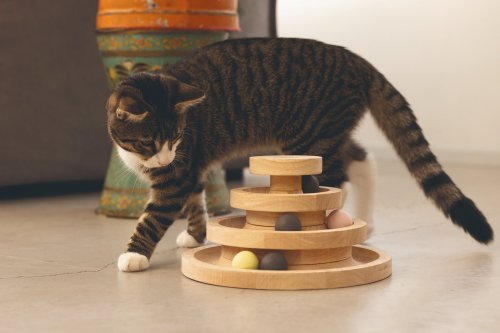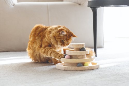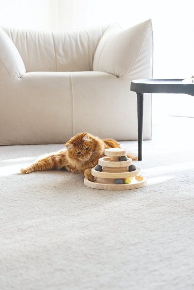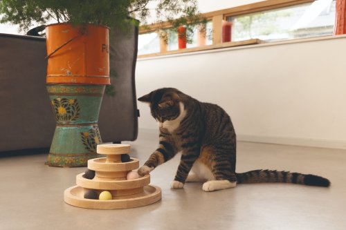 Kočky si rády hrají a často se hry nemohou nabažit. Herní věž Mia od Designed by Lotte je perfektní hračkou pro hravé mazlíčky. Nabízí tři patra včetně několika míčků. Jakmile Vaše kočka do míčků ťukne čumáčkem nebo tlapkou, rozkutálí se. Může si hrát sama, ale samozřejmě si můžete hrát i společně. Rozpohybujte míčky a sledujte, jestli je Váš chlupatý parťák stihne všechny následovat. Hrací věž je vyrobena z kaučukového dřeva a je laděna do přírodních tónů, takže se bude skvěle vyjímat v každém interiéru.