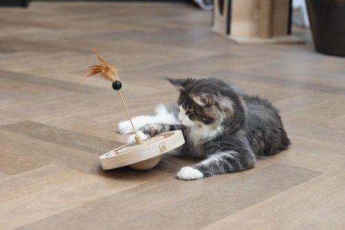 Hračka, škrabadlo, přírodní vzhled a kývací efekt? Toto všechno nabízí Winni - hračka pro kočky od Designed by Lotte. Je vyrobená z kaučukovníku, a tak bude vypadat skvěle ve Vašem interiéru. Díky různým herním prvkům bude Vaše kočka extra motivovaná ke hře. Hračka disponuje sisalovou škrabací podložkou, kterou může Vaše kočka hravou formou používat k péči o své drápky. Uprostřed najdete škádlítko s dřevěnou kuličkou a pírky, a dále koulodráhu s dalšími 2 dřevěnými koulemi. Jakmile se Váš mazlíček dotkne těchto herních prvků svými tlapkami či čumáčkem, hračka se díky svému kulatému dřevěnému dnu začne kývat. Tento kývací efekt motivuje Vaši kočku k další a další hře.
