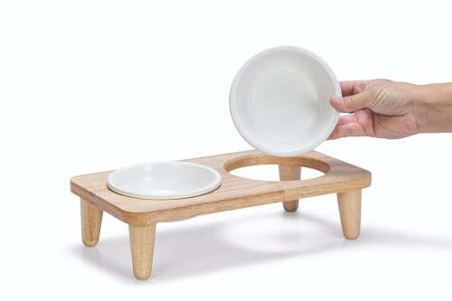 Nechte svého mazlíčka stylově povečeřet z elegantní jídelní soupravy Djeha. Set obsahuje dvě keramické misky, ve kterých můžete servírovat krmivo i vodu zároveň. Jsou misky špinavé? Jistě Vás potěší jejich snadná údržba - misky lze mýt v myčce na nádobí. Krásný vzhled doplňuje stojan z kaučukového dřeva, který dodává Vašemu interiéru krásný, přirozený vzhled. Právě díky svému jednoduchému a čistému designu se Djeha hodí k různým interiérovým stylům. Sada je vhodná nejen pro kočky, ale i pro malé psy.
