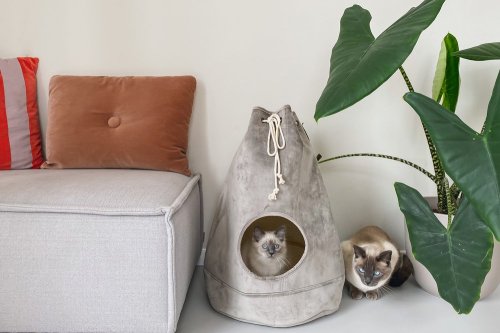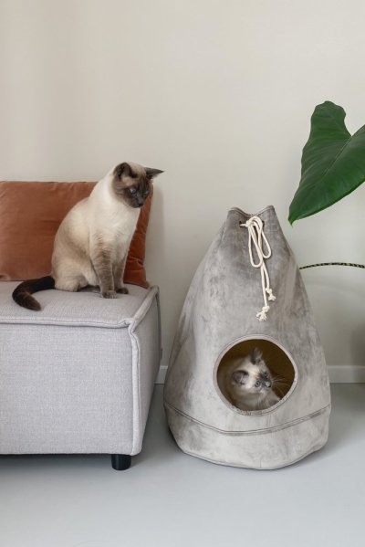 Představujeme útulný kočičí domeček, kterým Vaší kočce dopřejete její vlastní místečko k nerušenému odpočinku. Bonusem je to, že se bude i krásně vyjímat ve Vašem interiéru. Pelíšek svým tvarem připomíná vak, který se zavazuje šňůrkou. Otvor v přední části nabízí snadný vstup. Součástí je měkký polštář, který zajistí pohodlí. Polštářek lze prát v pračce na 30 stupňů.