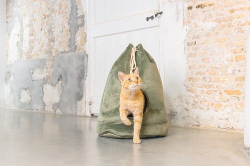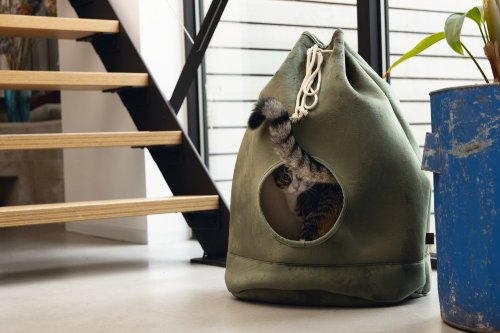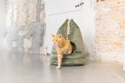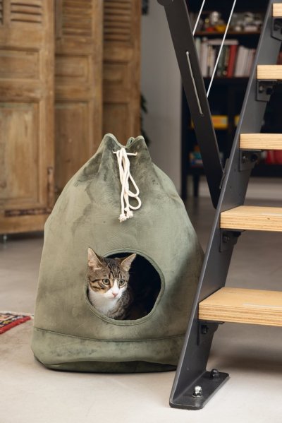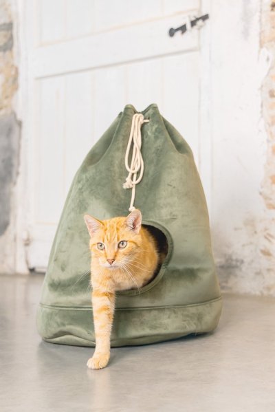 Představujeme útulný kočičí domeček, kterým Vaší kočce dopřejete její vlastní místečko k nerušenému odpočinku. Bonusem je to, že se bude i krásně vyjímat ve Vašem interiéru. Pelíšek svým tvarem připomíná vak, který se zavazuje šňůrkou. Otvor v přední části nabízí snadný vstup. Součástí je měkký polštář, který zajistí pohodlí. Polštářek lze prát v pračce na 30 stupňů.