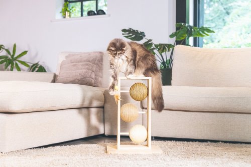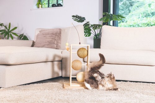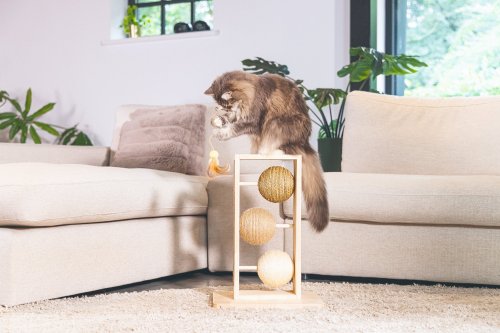 Škrabací koule Lomax jsou skutečným designovým kouskem pro Váš domov, se kterým si Vaše kočka užije spoustu zábavy! Konstrukce je vyrobena z kaučukového dřeva, které má krásnou, světle krémovou barvu. Každá koule je navíc omotána jiným typem provazu: jutou, sisalem a mořskou trávou. Součástí škrabadla je i škádlítko s hracím peřím pro extra zábavu. Svým uspořádáním, jako by vás Lomax zval na partičku piškvorků :) Lomaxem uděláte radost nejen Vaší kočce, ale i Vašemu interiéru.