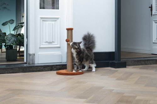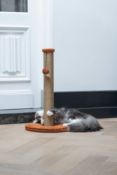 Toto škrabadlo bude nejen užitečné pro Vaši kočku a péči o její drápky, ale bude také vypadat skvěle ve Vaší domácnosti. Základna je potažena luxusní žebrovanou tkaninou, ve které jsou vyvedeny i další detaily. Škrabací sloupek je omotán jutovým lanem. Zde Váš mazlíček může svisle škrábat do sytosti a Váš nábytek tak už nebude sloužit jako škrabadlo. Díky zavěšené hračce ve formě míčku s pírkem je škrabadlo i neodolatelně zábavné. Zkrátka - s tímto škrabadlem uděláte radost sobě i své kočce.