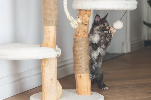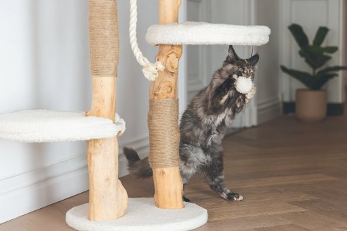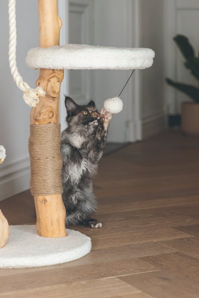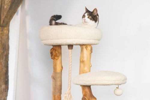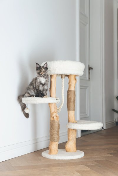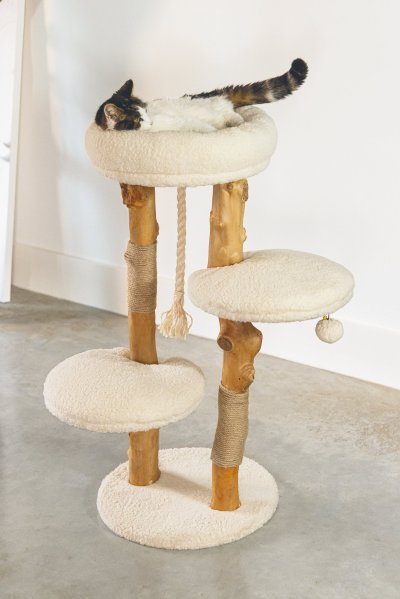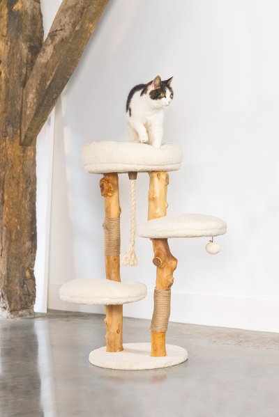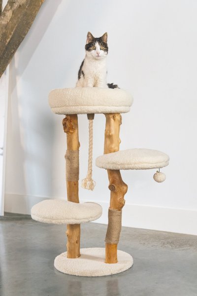 Vanja od Designed by Lotte mezi ostatními škrabadly okamžitě zaujme. Je vyrobeno z datlového a hruškového dřeva, které dodávají škrabacímu stromu jedinečný přírodní vzhled. Díky tomu bude škrabadlo vypadat krásně ve Vašem interiéru. V horní části tohoto škrabadla najdete měkký pelíšek z krásné plyšové látky. Vaše kočka může v tomto kočičím košíku odpočívat, zatímco má z vyvýšeného místa dokonalý přehled. To je něco, co mají kočky opravdu rády. Může také lenošit na dalších dvou plošinách. Jako přidaný herní prvek nabízí škrabadlo jutové lano, které podporuje péči o drápky a hrací míček. Škrabadlo Vanja bude nejen krásným kouskem nábytku ve Vašem interiéru, ale bude také funkční a pohodlné pro Vašeho mazlíčka. Potahy relaxačních prostor lze sejmout a prát na 30 stupňů.