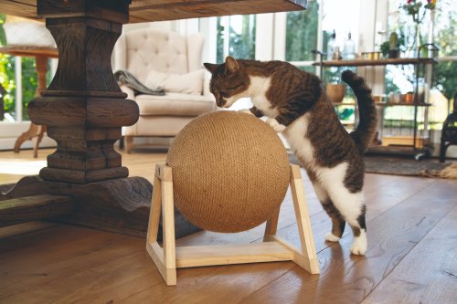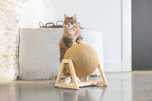 Protože škrabadlo Balty ve tvaru koule má velký úspěch, přichází další kousek od Designed by Lotte - škrabací koule Xem, která je pevně umístěna v krásném dřevěném stojanu. Velká škrabací koule nejenže vypadá opravdu pěkně v každém interiéru, ale nabízí Vaší kočce dostatek zábavy a prostoru ke škrábání.