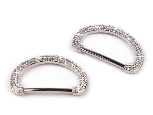 Kovová spona působí slavnostně, za což vděčí broušeným kamínkům, které se efektně třpytí. Hodí se na textilní opasky ke společenským šatům, sukním, kabátům i jako ozdoba psaníček.