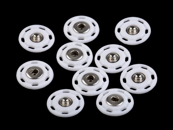 Designové plastové patentky využijete jako zapínání na tašky, [lehčí svetry] nebo mikiny. Okraje mají lemované dírkami, kterými je pohodlně našijete na látku.