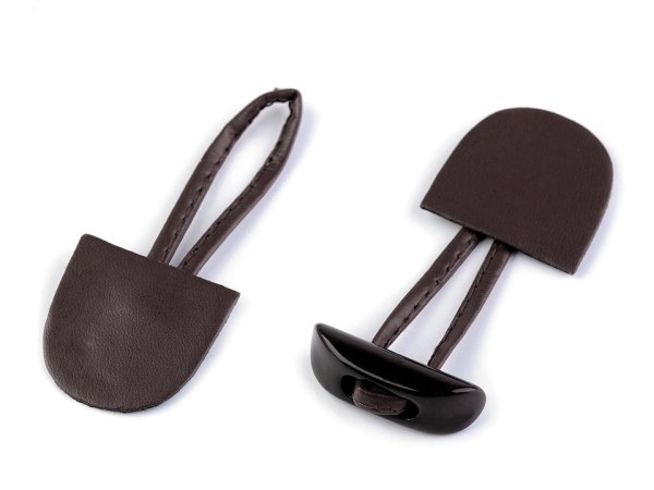 Zapínání z eko kůže působí elegantně. Využijete ho na kabáty, svetry, saka nebo kožichy. Je vhodné také pro šití duffle coat. Zapínání může být rozlepené, což není důvod k reklamaci - jedná se o polotovar, který je nutno prošít.