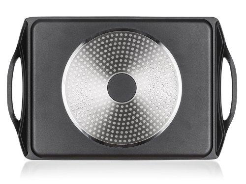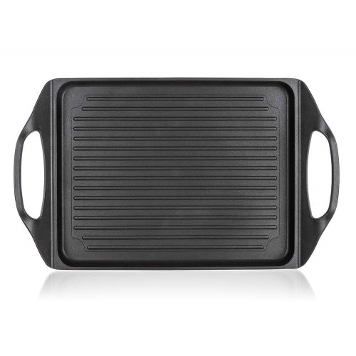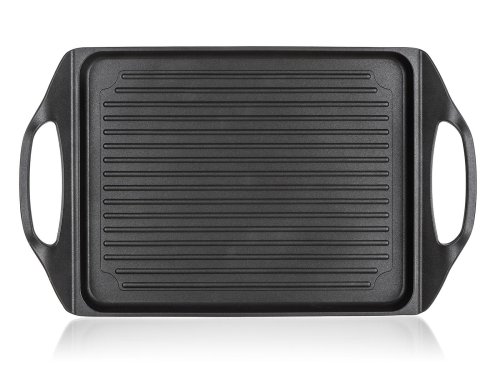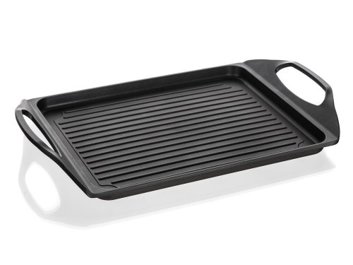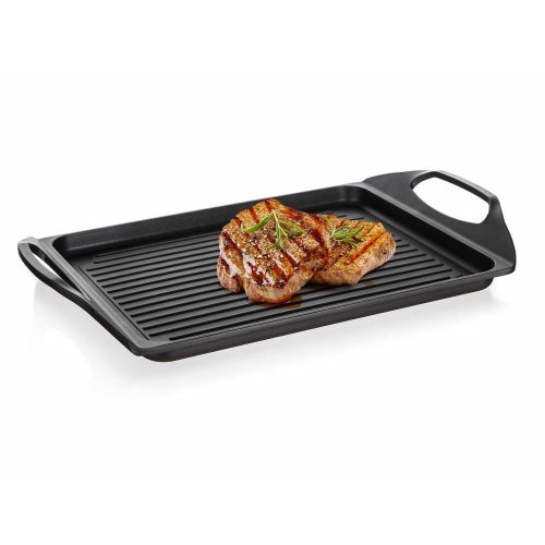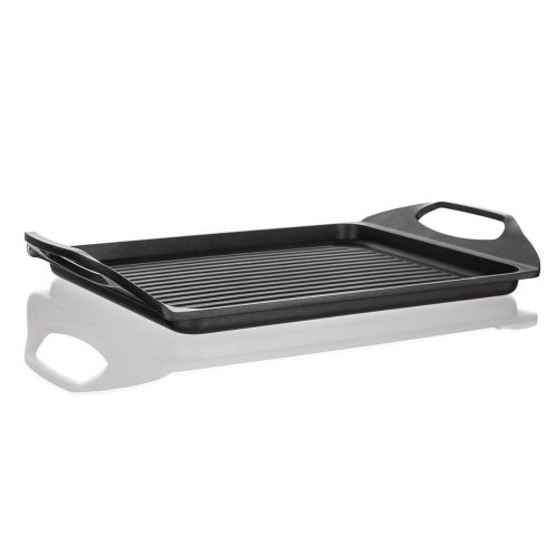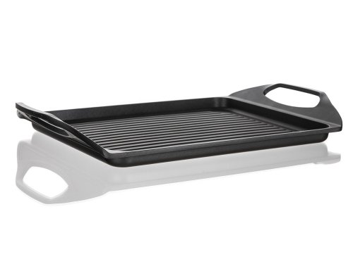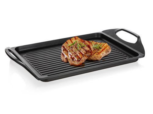 Deska na grilování s 2vrstvým nepřilnavým povrchem, je vhodná na pečení a grilování na sporáku, v troubě i venkovním grilu. Skvěle ji využijete při přípravě steaků, ryby, klobásek, zeleniny, volských ok a lívanců. Deska je opatřena praktickými uchy pro snadnou manipulaci. V případě použití desky na plynovém sporáku je nutné použít rozptylovače plamenů.