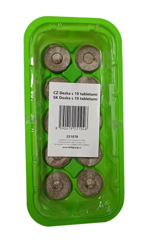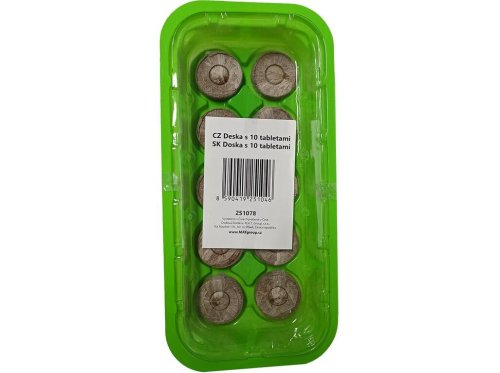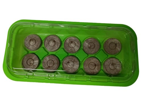 Sada pro předpěstování s deseti tabletami s plastovým krytem pro udržení správného mikroklima pro malé rostlinky či řízky. Substrát připravíte tak, že zalijete kokosovou tabletu malým množstvím vlažné vody, (přibližně 180 ml) a necháte ji několik minut nabobtnat.