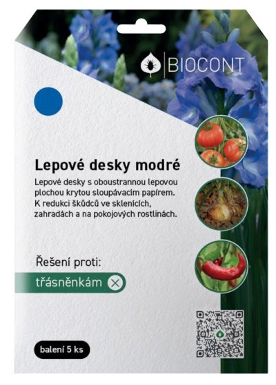 Modrá barva těchto lepových desek mimořádně intenzivně láká třásněnky. Desky jsou vhodné k signalizaci výskytu škodlivých třásněnek a kontrole účinnosti ochrany před nimi, tak i k částečné přímé ochraně rostlin na menších plochách. Lapače můžete použít rovněž v kombinaci s dalšími prostředky biologické ochrany rostlin.