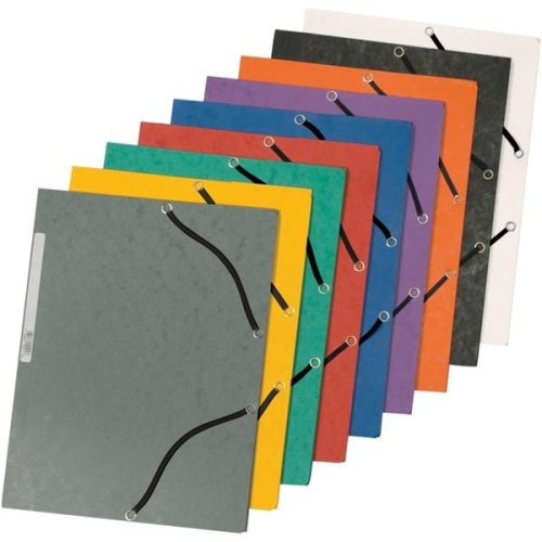 • Praktické kartonové desky se třemi klopami a černými gumičkami značky Q-Connect určené pro dokumenty do formátu A4, dobře vypadají a spolehlivě chrání obsah