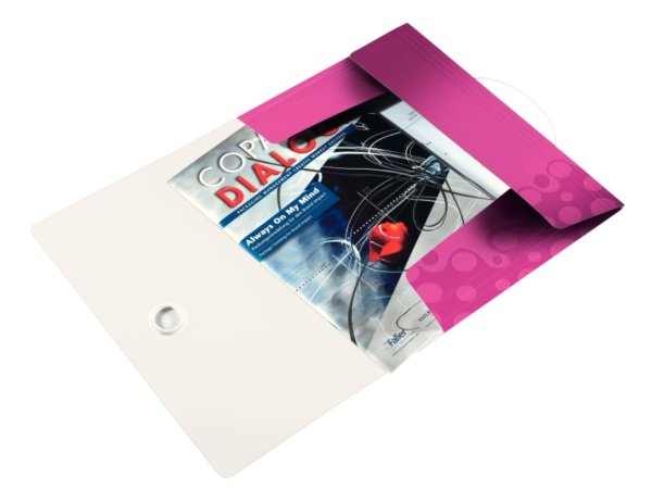S atraktivním uzavíráním na gumičku Vyrobeno z unikátního dvoubarevného polypropylenu Kapacita 150 listů Rozměry: 23,5 x 32,0 cm (š x v)