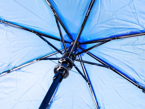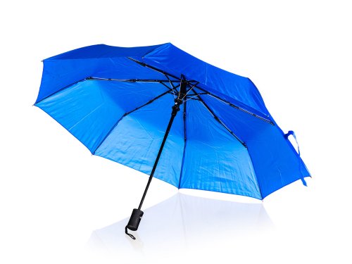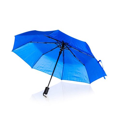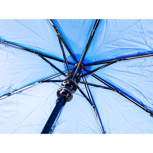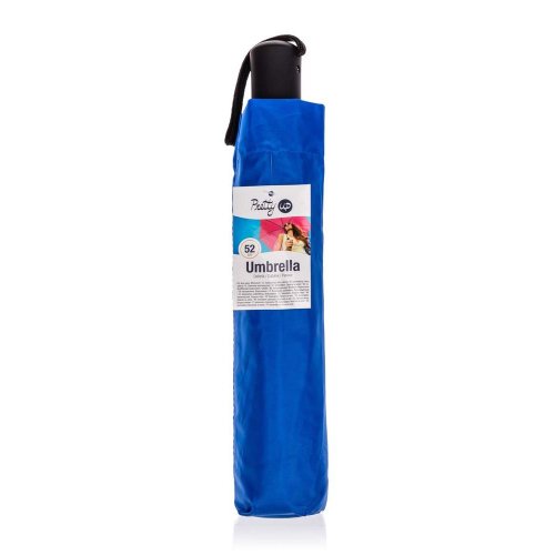 Skládací deštník 52 cm, v modré barvě, slouží k ochraně proti dešti a přímému slunci. Je vyroben z nepromokavého materiálu polyester. Má ochranu proti poškození větrem, automatické otevíraní a je skládací pro snadné uskladnění.