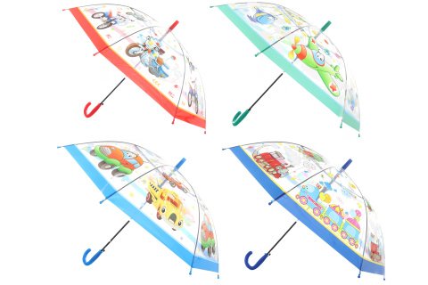 Průhledný vystřelovací deštník s motivy dopravních prostředků. Rozměry rozloženého deštníku cca 83 x 83 x 65,5 cm. Rozměry balení cca 65,5 x 9 x 4 cm. Baleno v igelitovém sáčku.