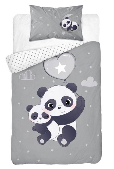 DETEXPOL Bambusové povlečení do postýlky Panda šedá 100/135, 40/60