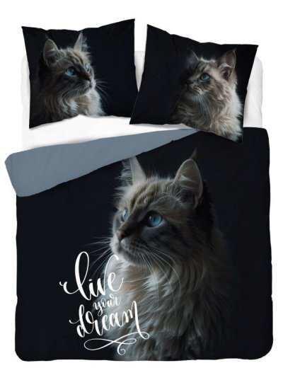 DETEXPOL Francouzské povlečení Kočka 220/200, 2x70/80 Bavlněné povlečení ve francouzském rozměru 220x200 cm na dvoulůžko, zapínání na zip Materiál: 100% Bavlna Rozměr: 1x 220/200, 2x 70/80 cm
