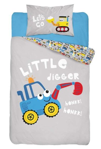 DETEXPOL Povlečení do postýlky Bagr modrý 100/135, 40/60 Dětské bavlněné povlečení do postýlky, motiv peřiny je z každé strany jiný, zapínání na zip, praní na 40°C Materiál: 100% Bavlna Rozměr: 1x 100/135, 1x 40/60 cm