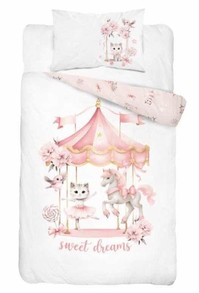 DETEXPOL Povlečení do postýlky Kolotoč 100/135, 40/60 Materiál: 100% Bavlna Rozměr: 1x 100/135, 1x 40/60 cm Dětské bavlněné povlečení do postýlky, motiv peřiny je z každé strany jiný, zapínání na zip, praní na 40°C