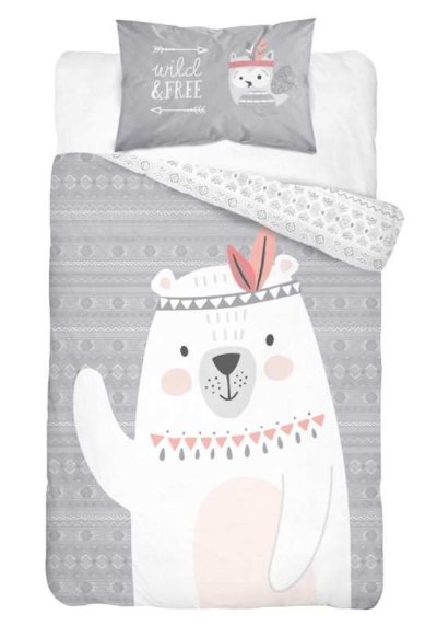DETEXPOL Povlečení do postýlky Medvídek Indián grey 100/135, 40/60 Dětské bavlněné povlečení do postýlky, motiv peřiny je z každé strany jiný, zapínání na zip, praní na 40°C Materiál: 100% Bavlna Rozměr: 1x 100/135, 1x 40/60 cm