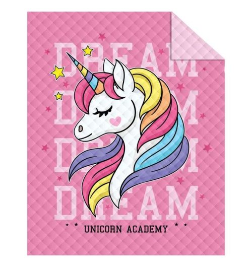 DETEXPOL Přehoz na postel Jednorožec dream 170/210 Přehoz na postel je vyroben ze 100% Polyesteru. Praktický přehoz na postel je lehký, dobře se s ním manipuluje. Přehoz je možné použít i jako lehkou deku pro návštěvu, nebo v horkých letních dnech jako přikrývku. Lze prát v pračce na 30°C. Materiál: 100% Polyester Rozměr: 1x 170/210 cm
