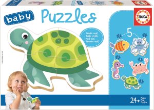 Obrysové BABY PUZZLE speciálně navržené pro děti od 12 měsíců od španělské firmy EDUCA: pět progresívních puzzle od 3 do 5 dílků, velké a silné dílky pro snadnější držení, rozvíjí dětskou pozornost, …