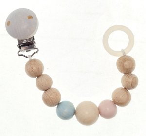 Délka řetízku: 22,5x3 cm, průměr kuliček: 1,5 cm Věk: 0+ Materiál: dřevo, silikon 100% Vyrobeno v Německu