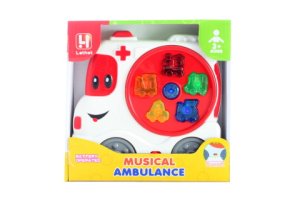 Sanitka po stisknutí tlačítek vydává zvuky různých dopravních prostředků a svítí.