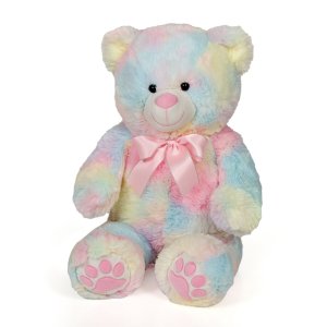 Plyšový medvěd sedící duhový s růžovou mašlí je vyroben z mimořádně jemného a měkkého materiálu, který je příjemný na dotek a vhodný pro děti všech věkových kategorií.
