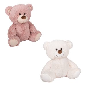 Plyšový mědvěd sedící – ve dvou barevných provedeních – bílý a starorůžový.