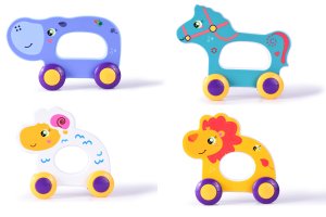 Autíčko s motivem ovoce na volnoběh, natahovací hrací strojek na střeše autíčka, pohyblivé dveře a pohyblivý červík. 3 druhy - ananas, meloun, jahoda.
