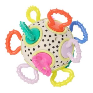 Kousátko ve tvaru míčku je ideální nejen k uchopení, třesení a kutálení, ale napomáhá také tlumit bolest dásní při prořezávání prvních zoubků.