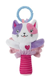 Měkoučká kočička chrastítko pro zábavu nejmenších s multisenzorickými prvky.