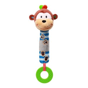 Barevné dětské chrastítko ve tvaru opičky s kousátky a zrcátkem, je díky svým veselým barvám a tvaru u dětí velmi oblíbené.