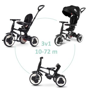 Multifunkční Tříkolka se stříškou CHIPOLINO Be Active se 2 různými způsoby použití - rodič tlačí dítě nebo dítě jede samo a řídí.