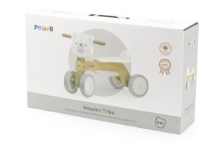 Rozměry: 55x47x30 cm Věk: 12m+ Materiál: vysoce kvalitní dřevo z udržitelných a obnovitelných zdrojů Ručně domalováno ekologickými barvami Odrážedlo je navrženo pro vnitřní použití