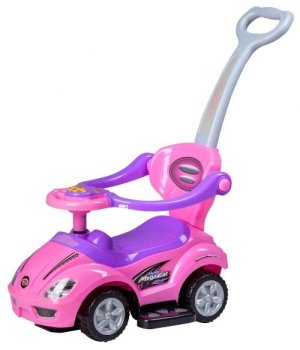 Růžové autíčko s vodící tyčí pro děti, které již samostatně sedí.
