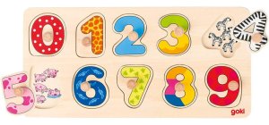 Barevná dětská vkládačka s číslicemi 0 - 9.