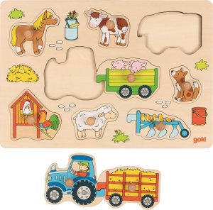 Barevná dětská vkládačka s devíti dílky s motivem farmy.