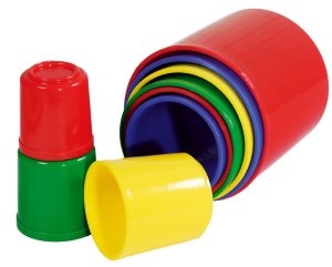 Kubus obsahuje devět kalíšků různých barev, které do sebe zapadají.