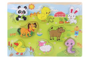 Dřevěná vkládačka s motivy domácích zvířátek.
