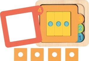 Rozměr: 13x13x6,5 cm Rozměr kostky: 3 cm, Ø 3,5 cm Věk: 12m+ Materiál: 100% FSC dřevo