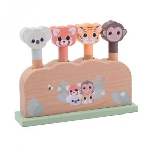 Klasická dřevěná zatloukačka s barevnými kolíčky a pevným kladívkem přináší dětem spoustu zábavy a zároveň rozvíjí jejich motoriku, koordinaci ruky a oka i sílu úchopu.